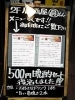 500円玉1個でも、ほろ酔い気分になれる?よかやん。いまどき、お小遣いが寂しいお父さん族には、涙がちょちょ切れるくらい、うれしい看板。これやったら、毎日通えるねー。